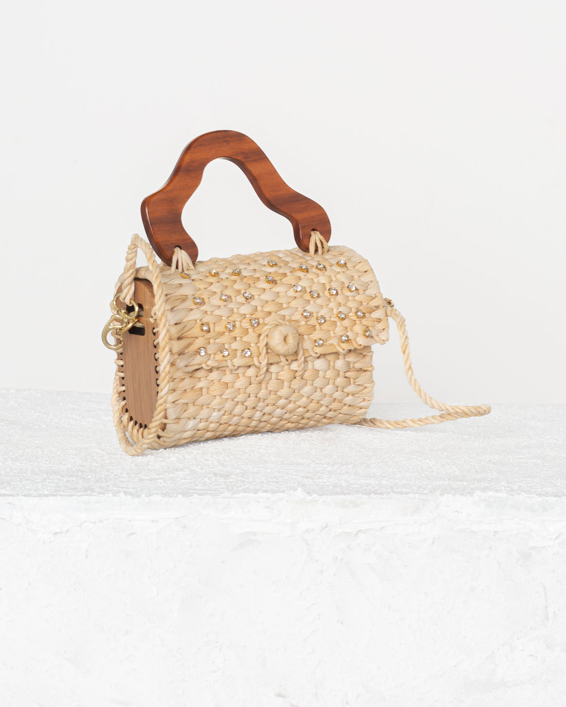 Bolsa feita em palha 100% natural e tingida manualmente.