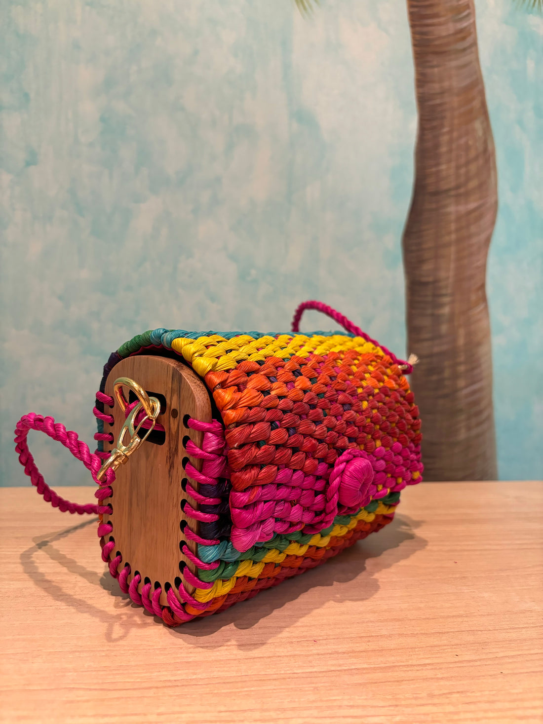 Feita à mão em palha natural com acabamento em crochê colorido, a Palha Gone Tanning...