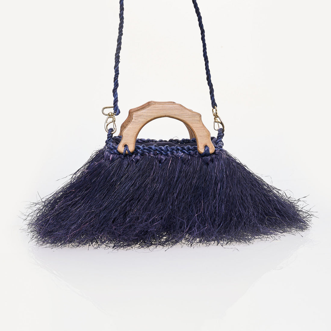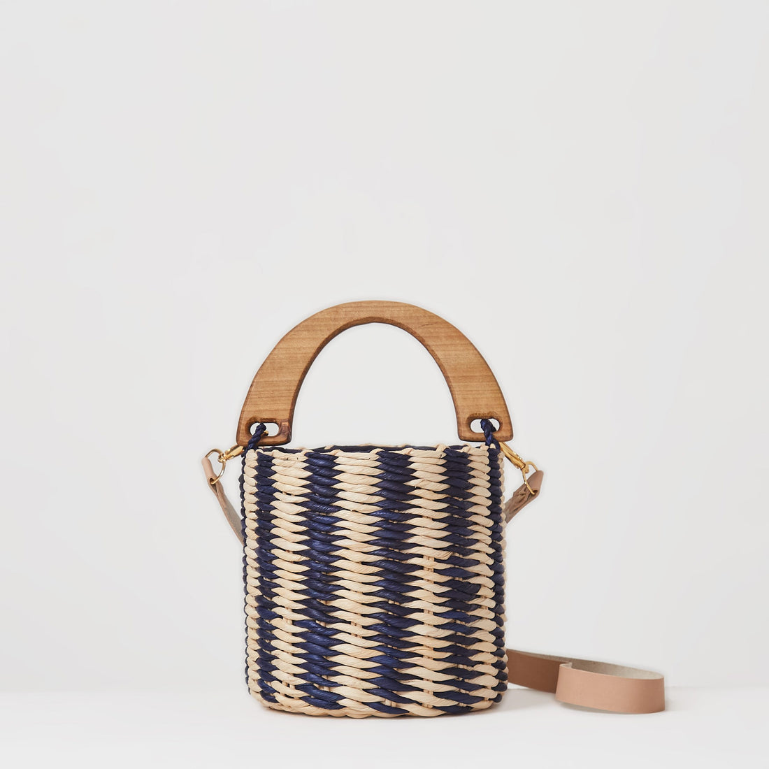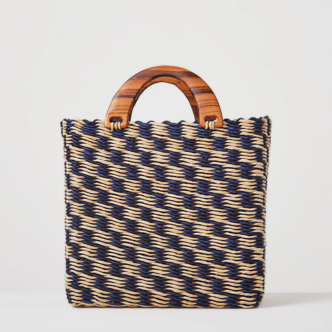 Alça de ombro em palha e alça de mão de madeira