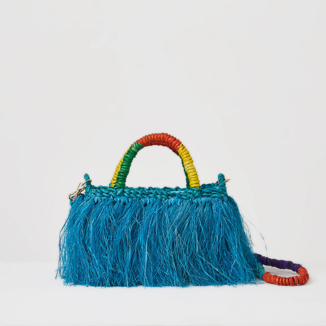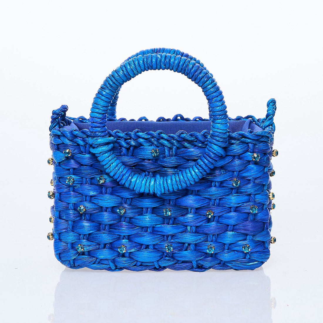 Feita a mão com palha natural e tingida manualmente.