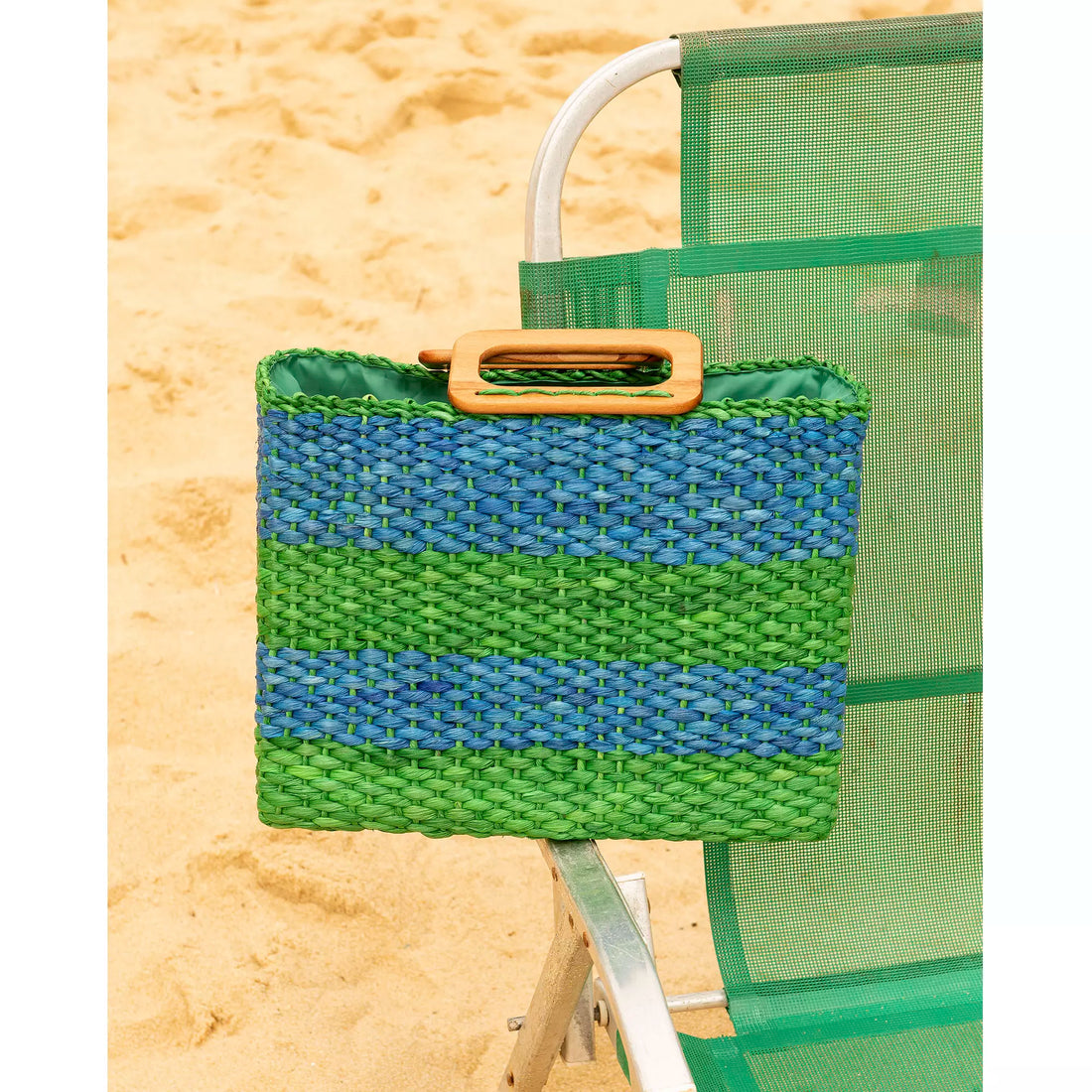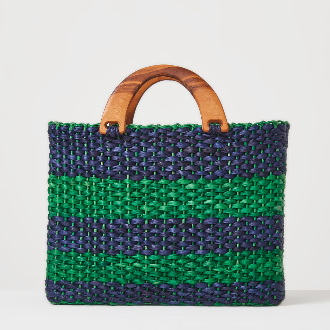 Alça de ombro em palha e alça de mão em madeira