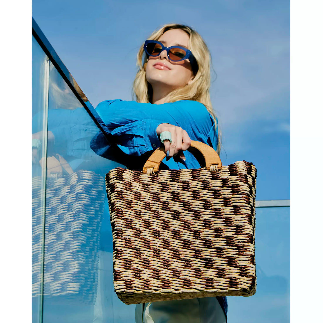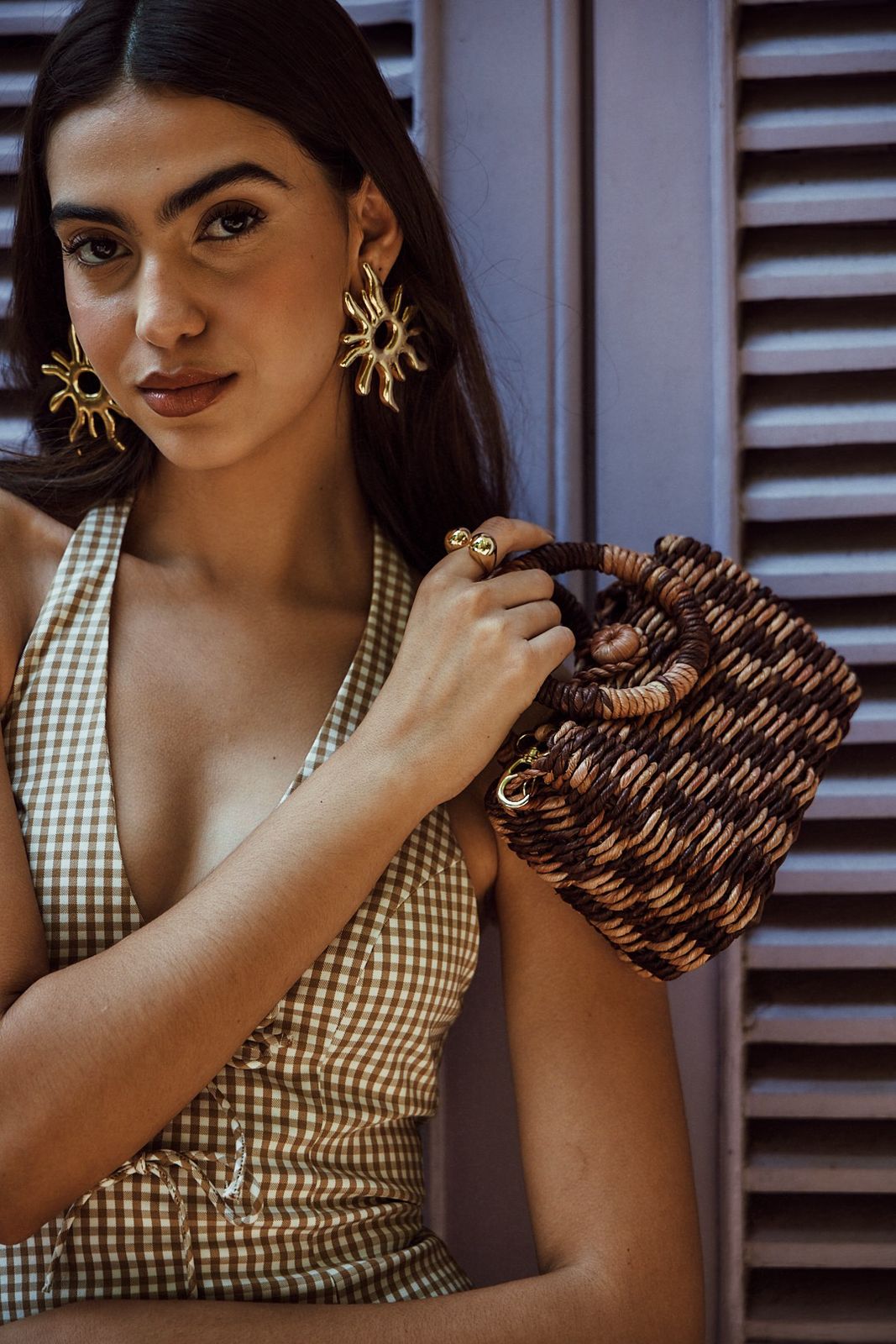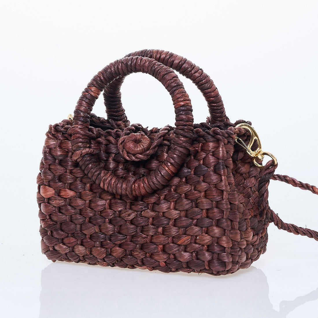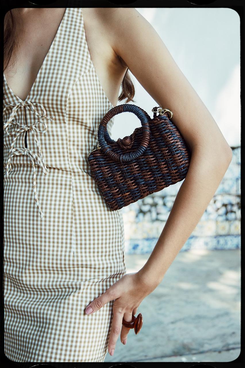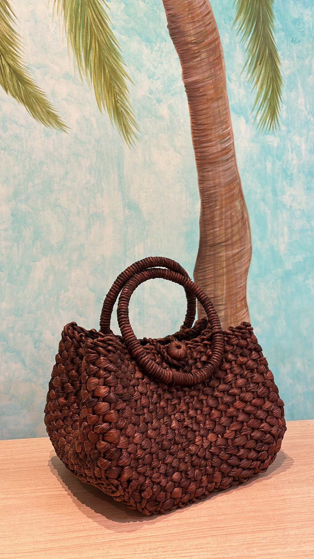 Bolsa inteiramente artesanal feita com palha natural e tingida manualmente.
