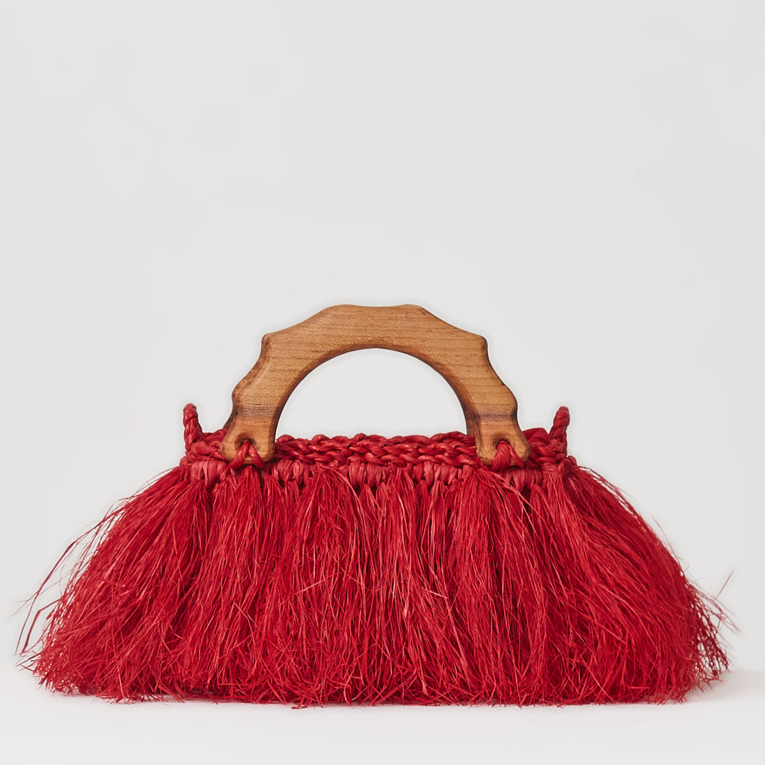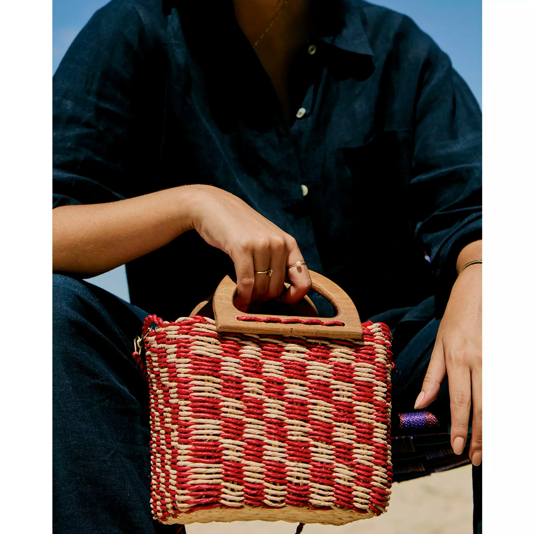 Alça de ombro em palha e alça de mão de madeira