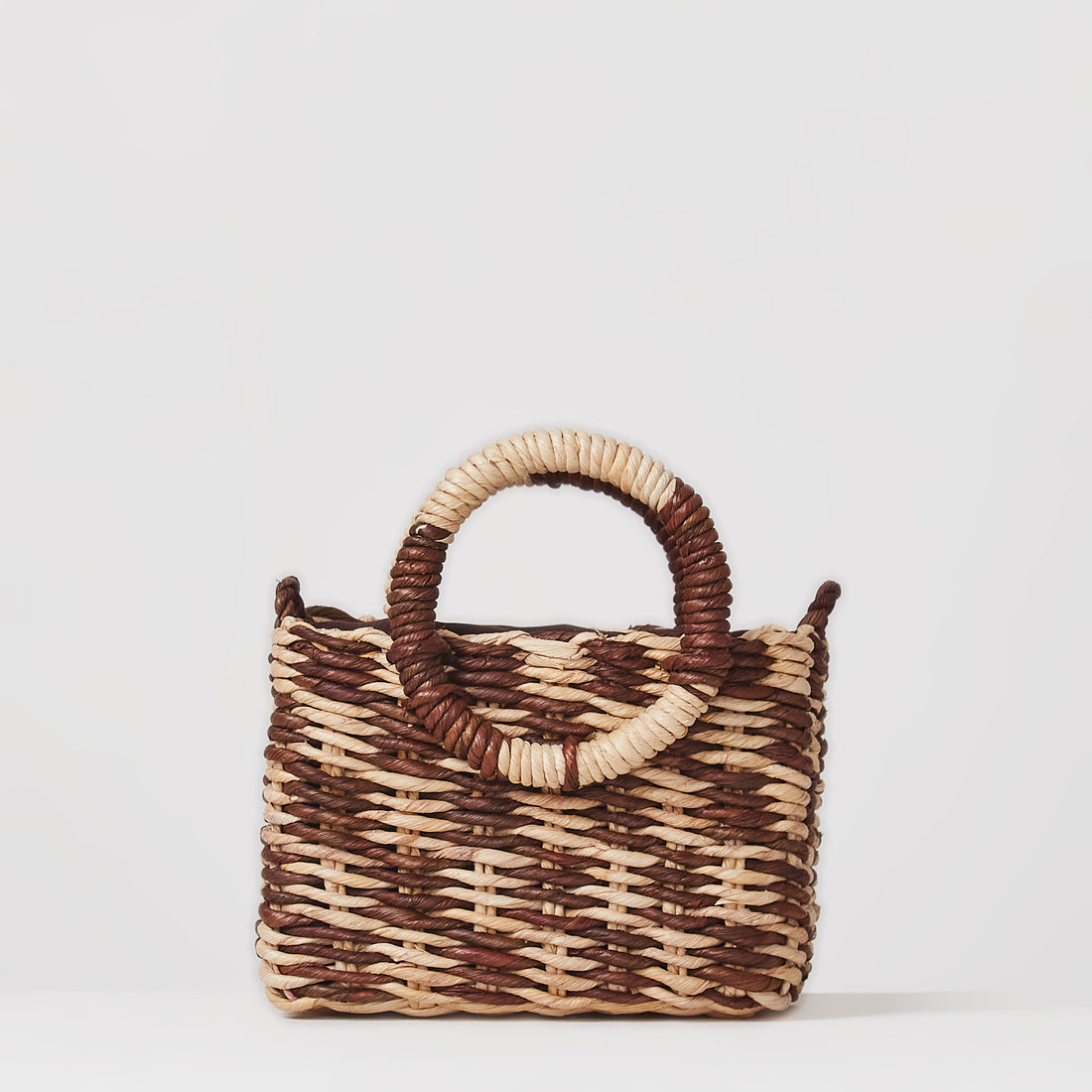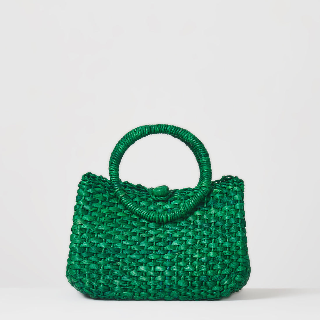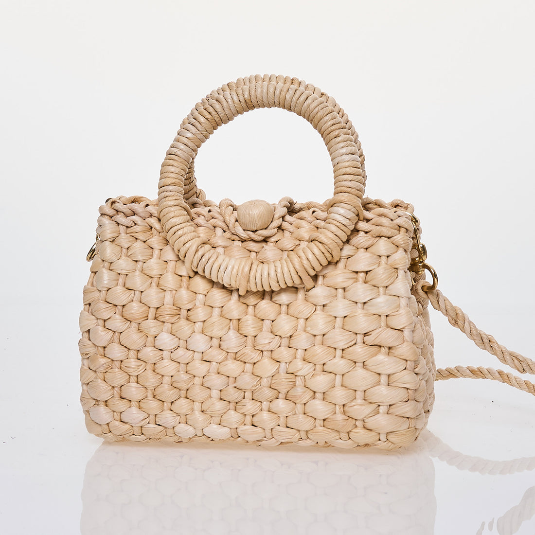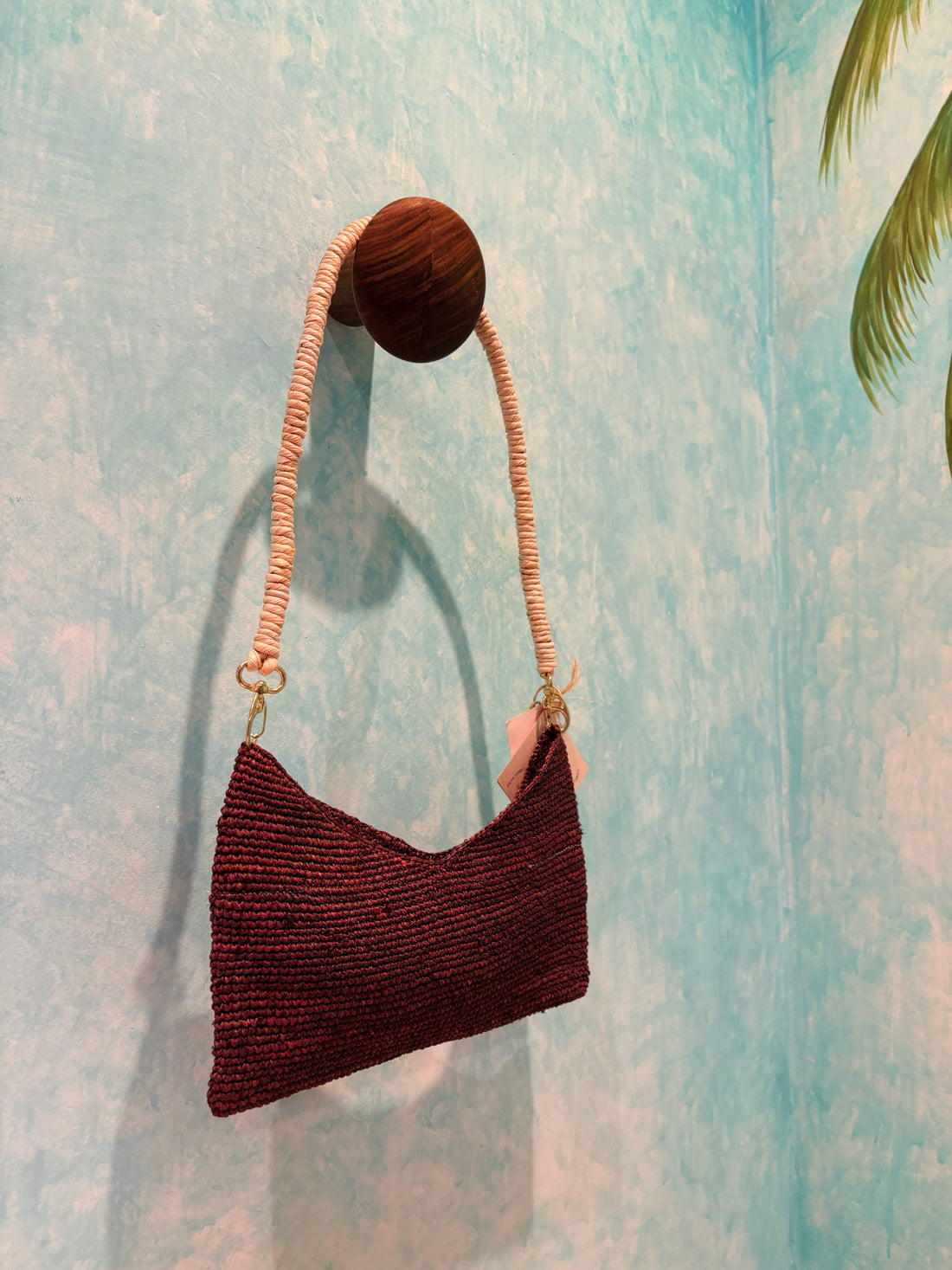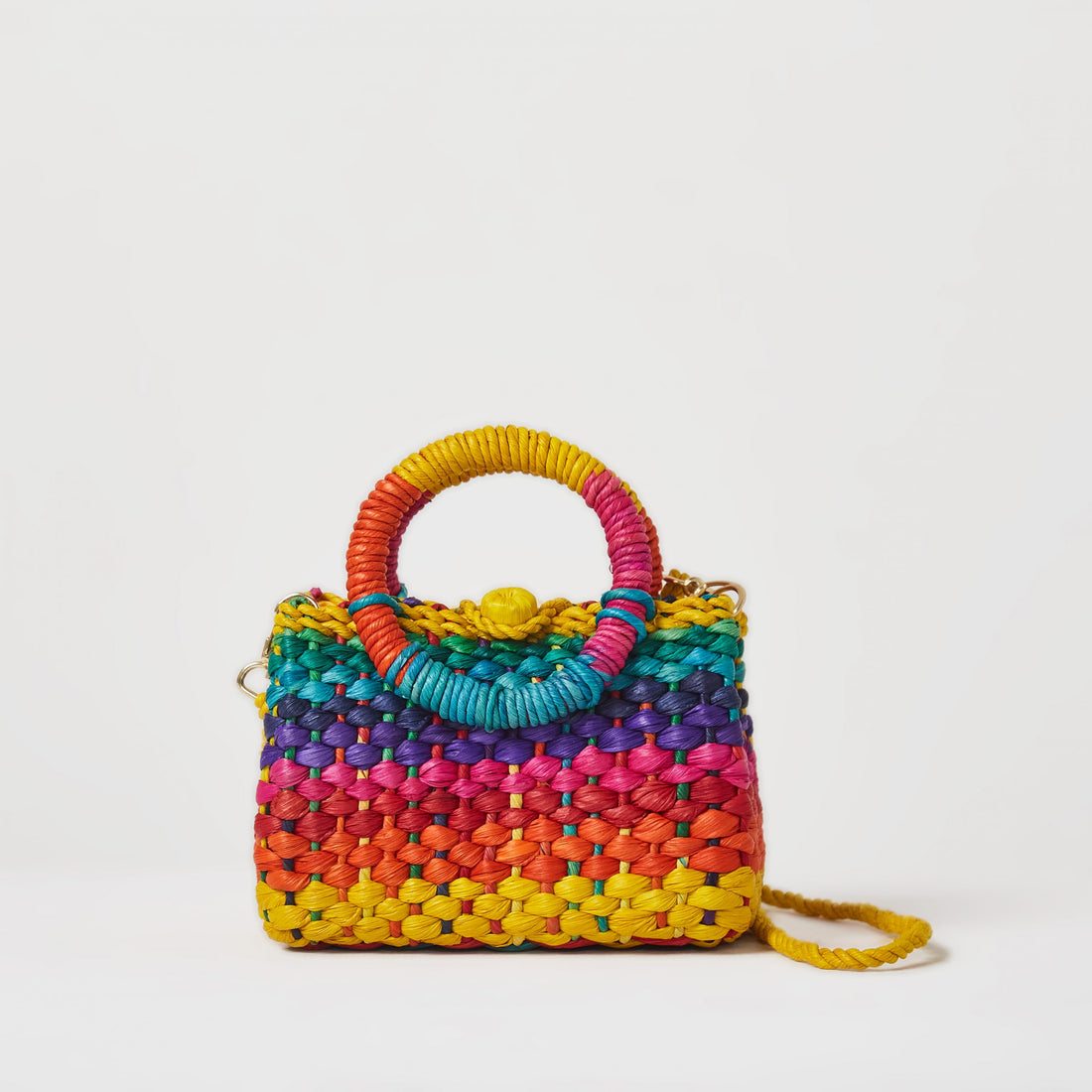 Bolsa inteiramente artesanal feita com palha natural e tingida manualmente.
