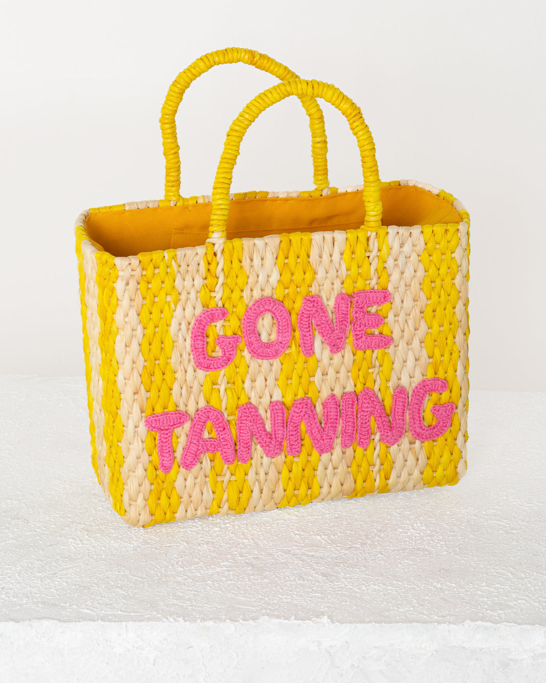 Feita à mão em palha natural com acabamento em crochê colorido, a Palha Gone Tanning...