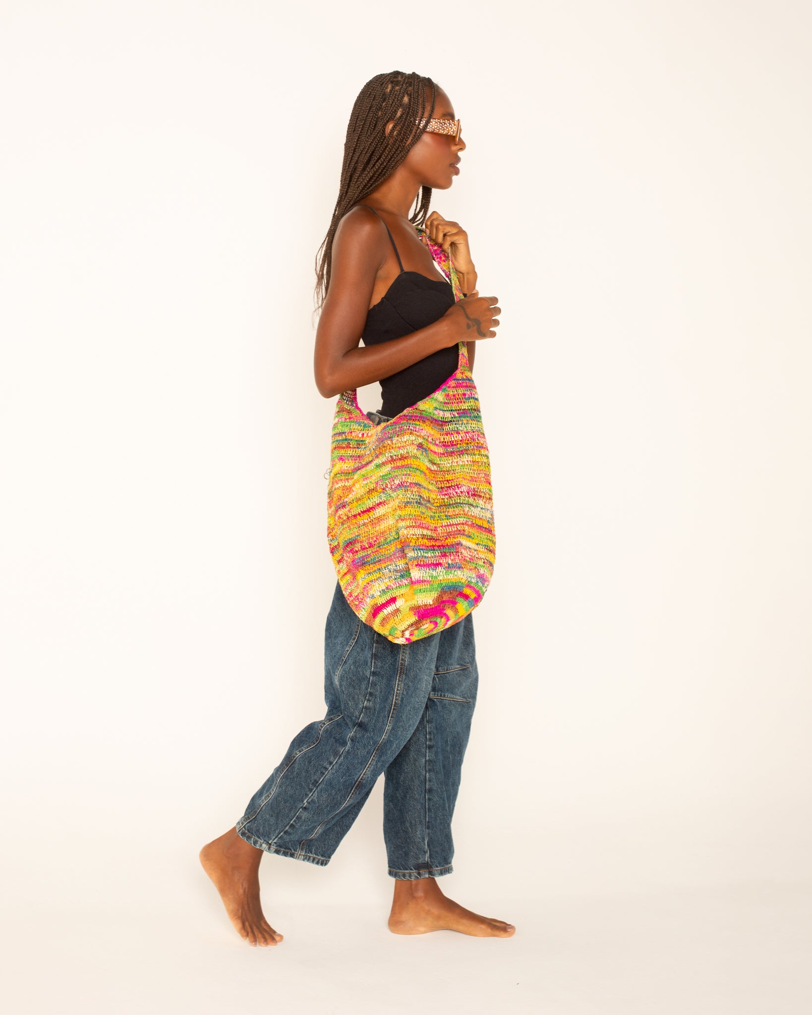Bolsa de Palha inteiramente feita à mão e tingida manualmente em um colorido impecável e divertido.