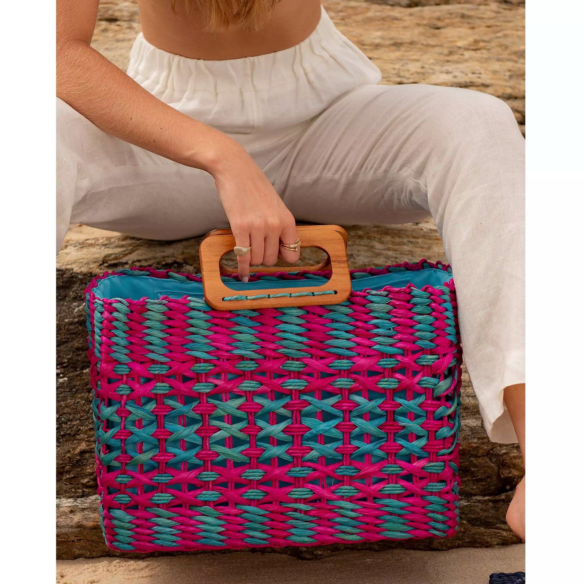 Produto inteiramente artesanal feito fibra com natural e tingimento manual