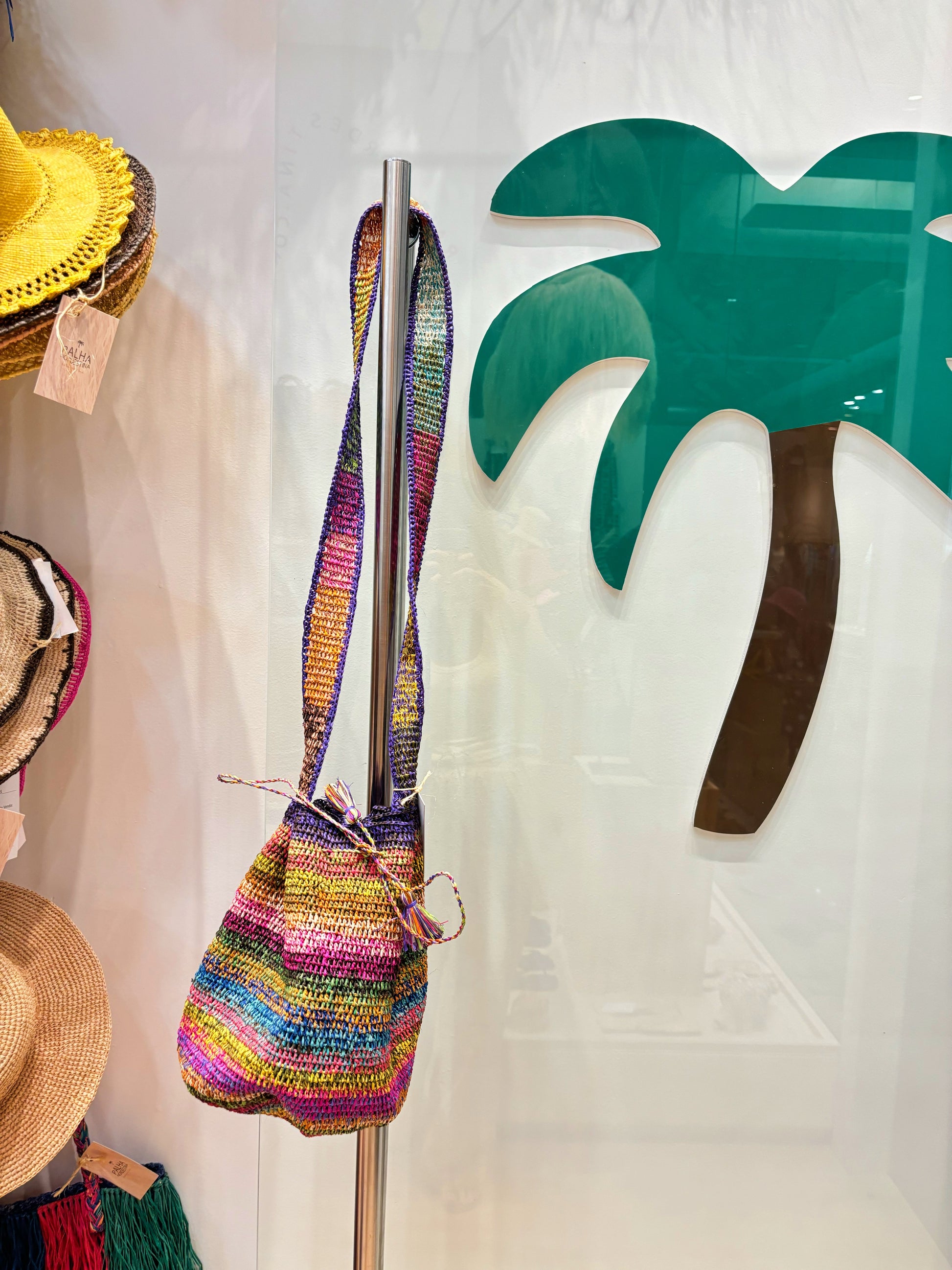 Bolsa feita em palha 100% natural e tingida manualmente.