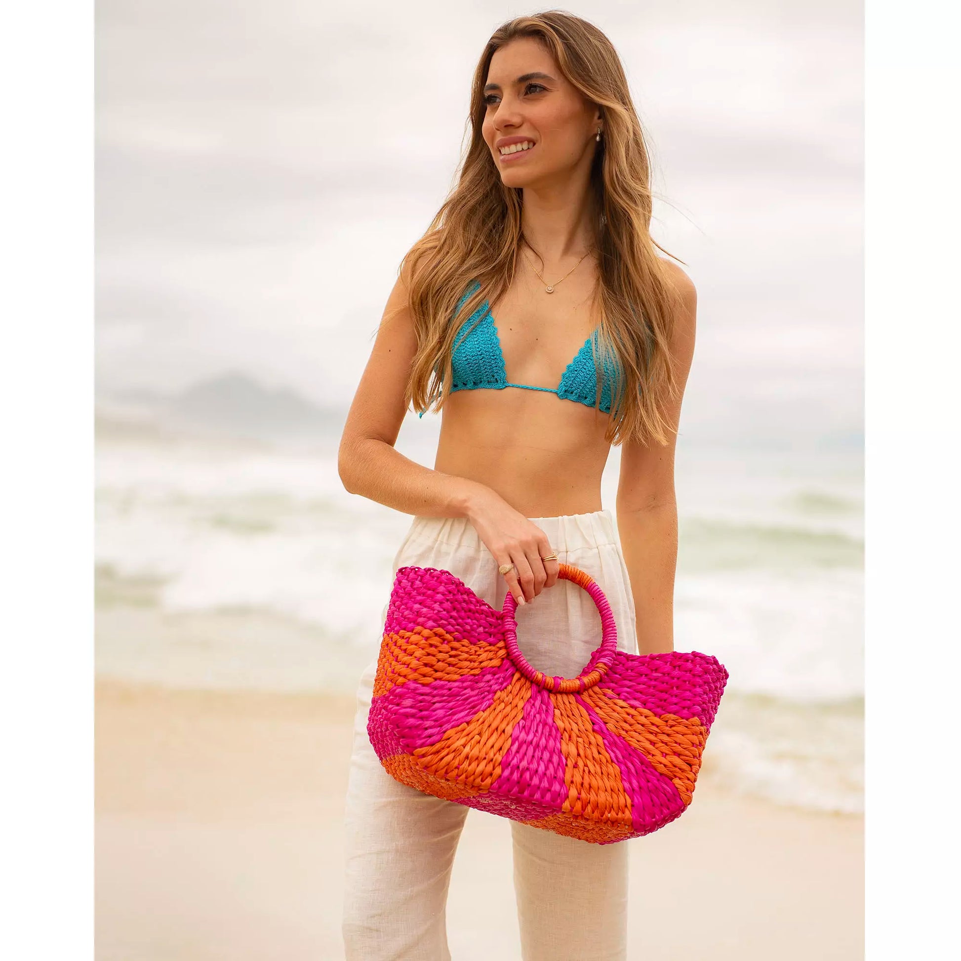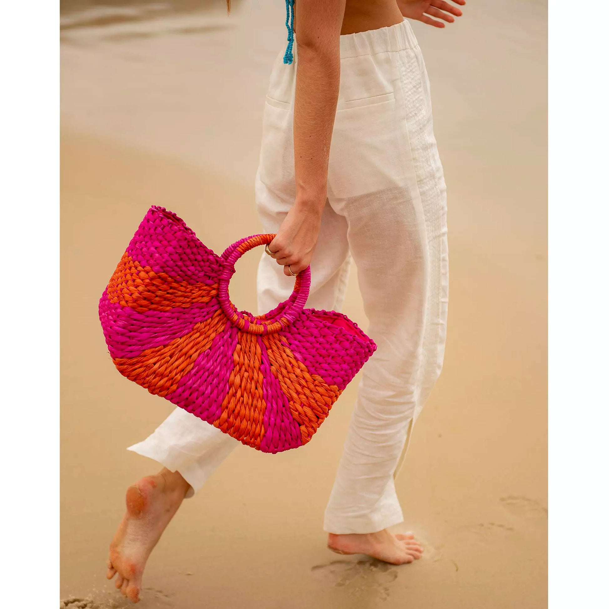 Alça circular de mão em palha